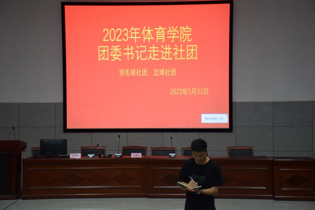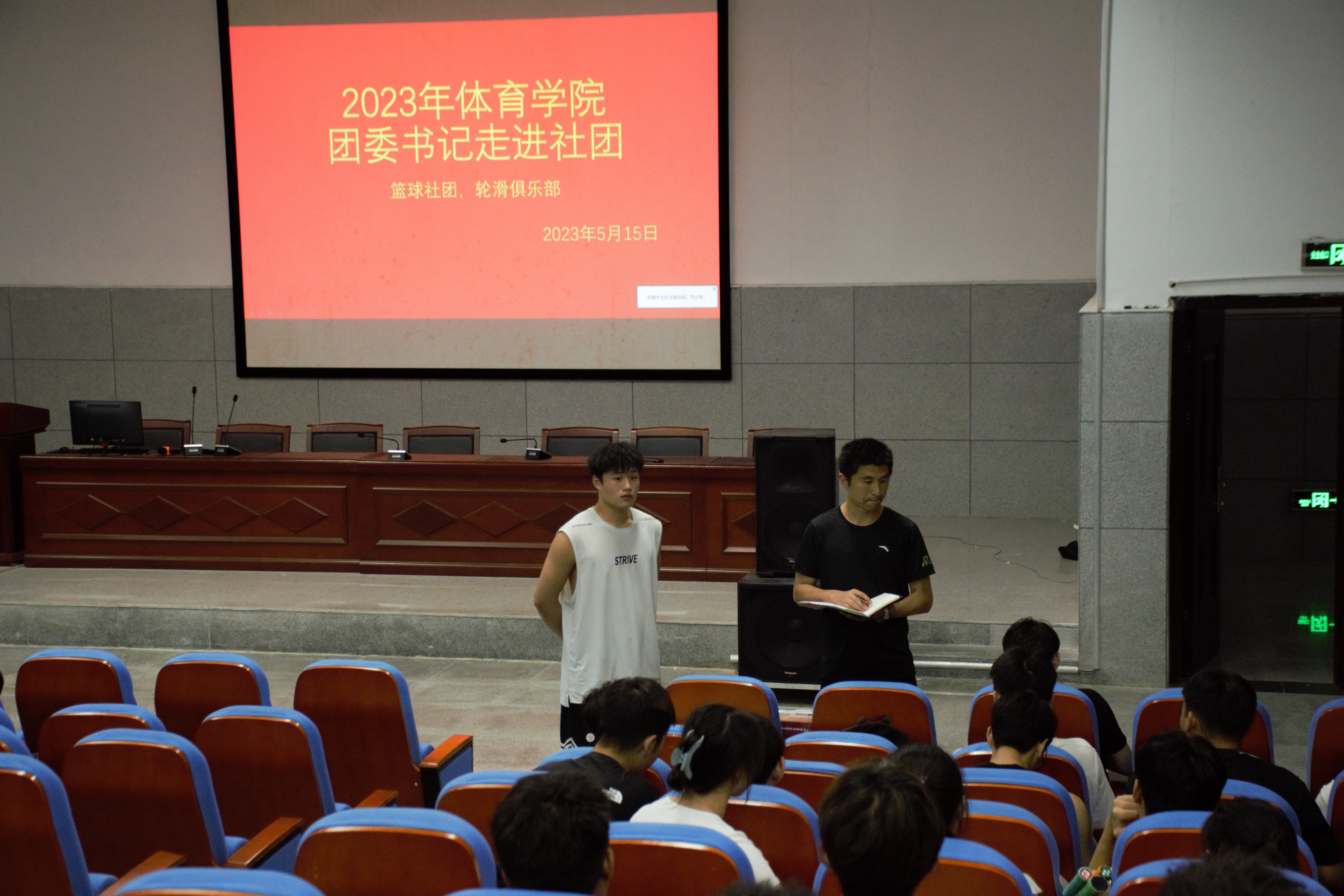 为进一步推动社团发展,加强社团管理,规划未来社团发展方向,并进一步拉近学生会与社团间的关系,使社团逐渐与学生会融合成为一个大家庭。2023年5月10日至5月31日每周一、三、五在体育学院报告厅召开“体育学院团委书记走进社团”会议。十四个社团先后参加此次会议,体育学院团委书记胡杰作为本次活动的指导老师。