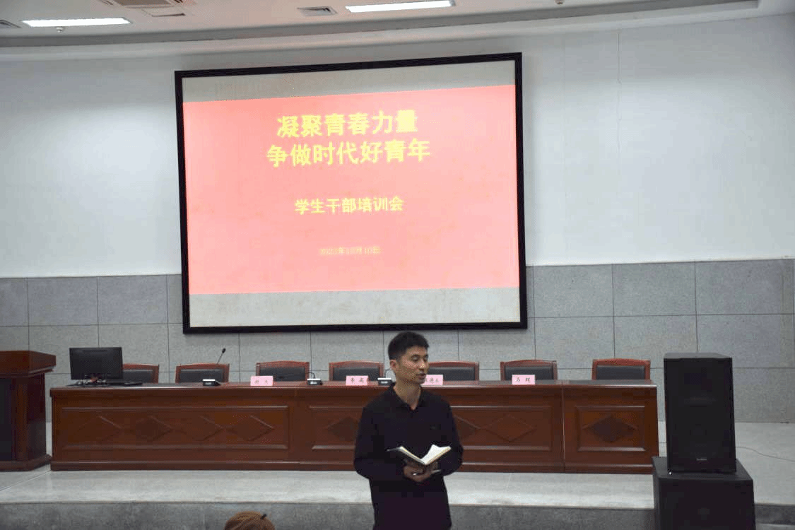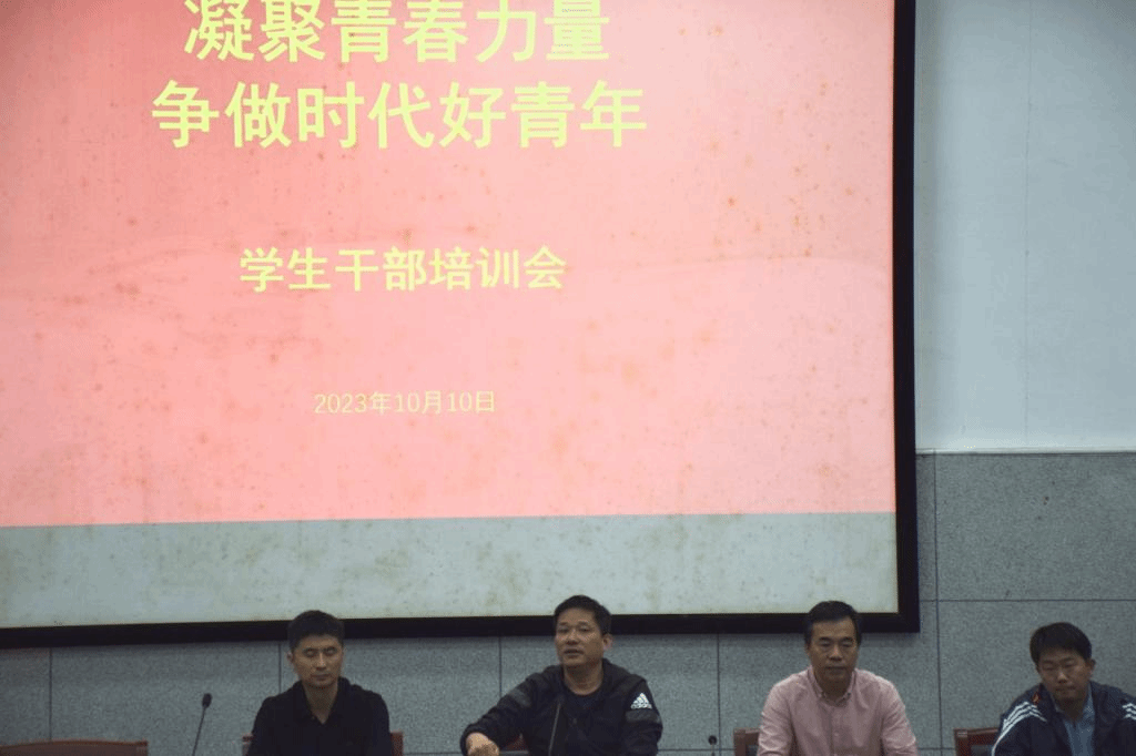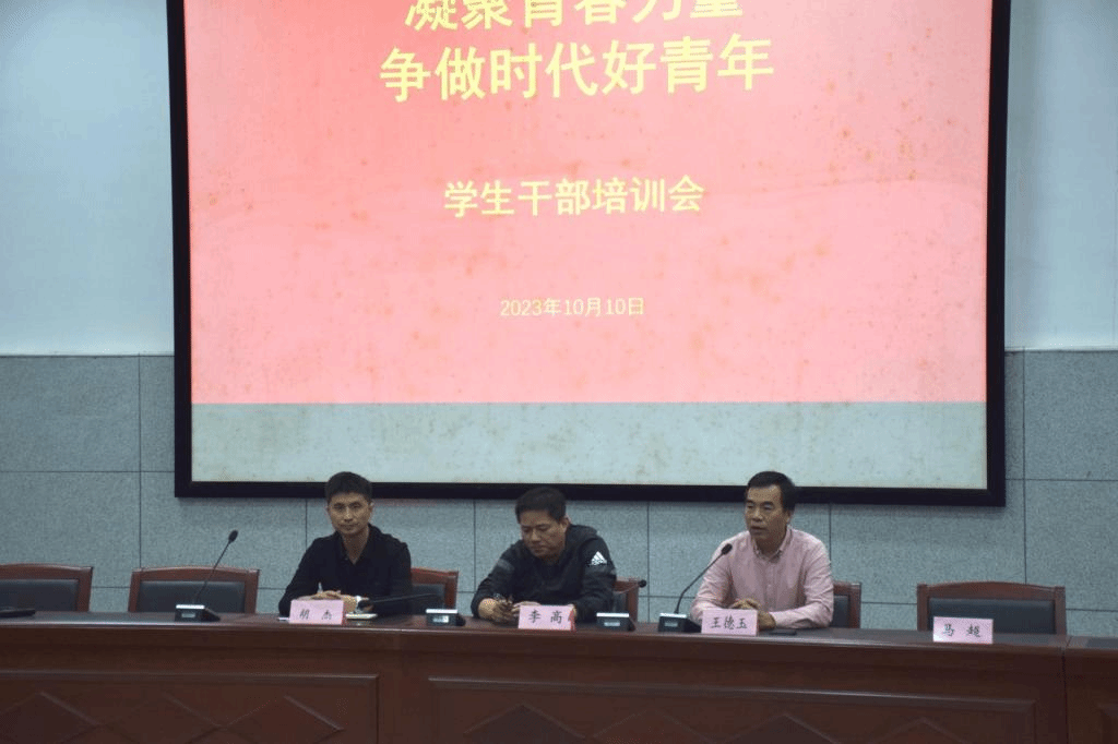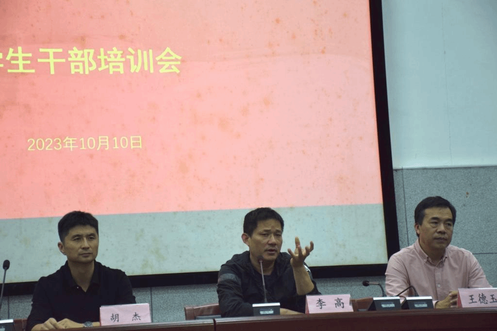 为进一步提高体育学院学生会学生干部的积极性、主动性,提升团队凝聚力与向心力,体育学院于2023年10月10日12点30分以“凝聚青春力量,争做时代好青年”为主题在体育学院报告厅召开学生干部培训会,参加此次会议的有体育学院党委书记李高、党委副书记王德玉、团委书记胡杰、团委副书记马超、学生会、青年志愿服务总队全体成员、社团负责人以及各班班长和团支书。