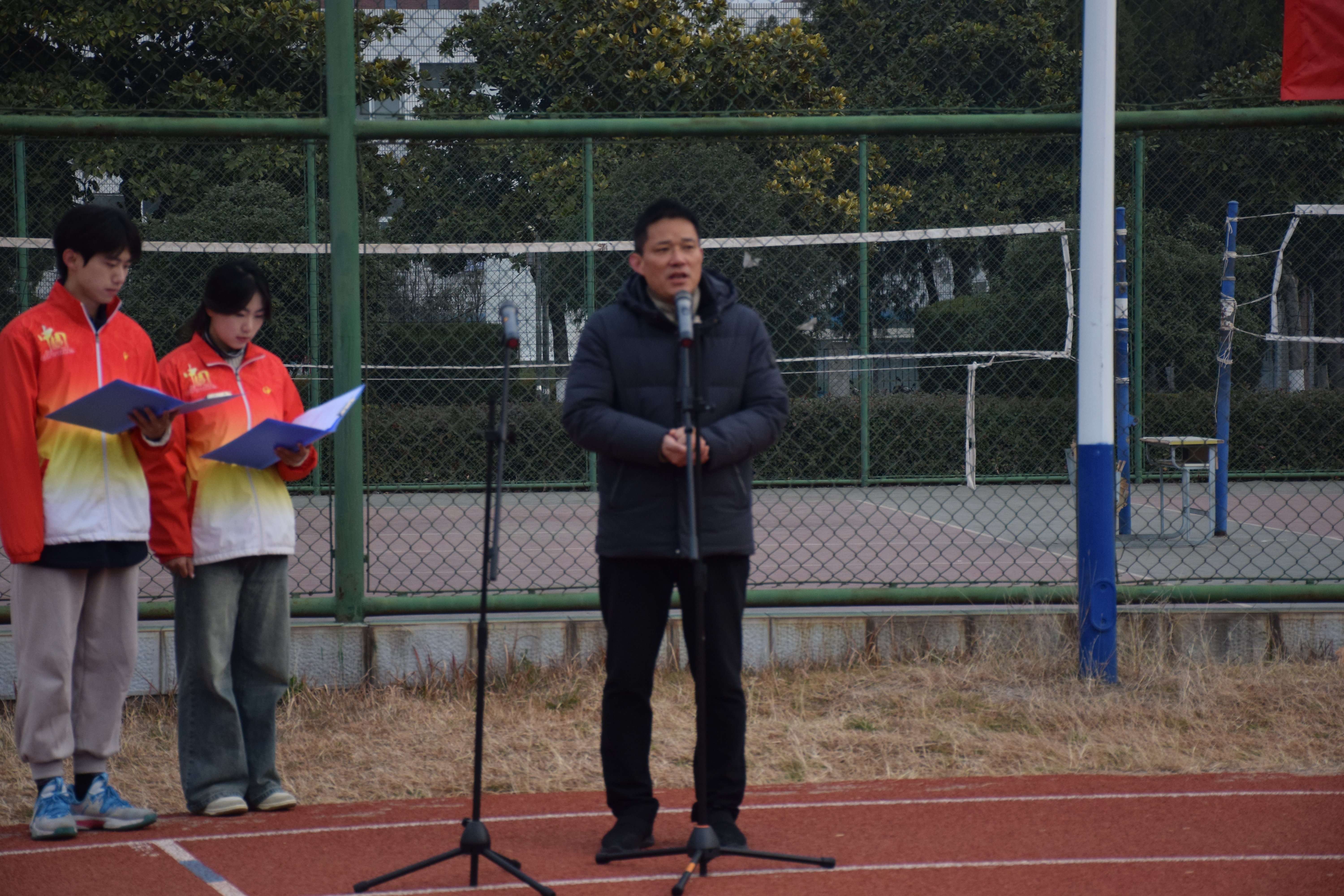 为加强全体师生对宪法的认同和了解,提升全体师生的宪法和法律素养,不断引导广大师生明辨是非,崇礼守法。2023年12月4日7:30宿州学院体育学院在田径场举行了隆重而庄严的升国旗仪式,参与本次活动的有体育学院党委书记李高、院长白明、副院长陈芳芳、团委副书记马超、23级辅导员陈冲,体育学院23级全体同学及学生会全体成员。