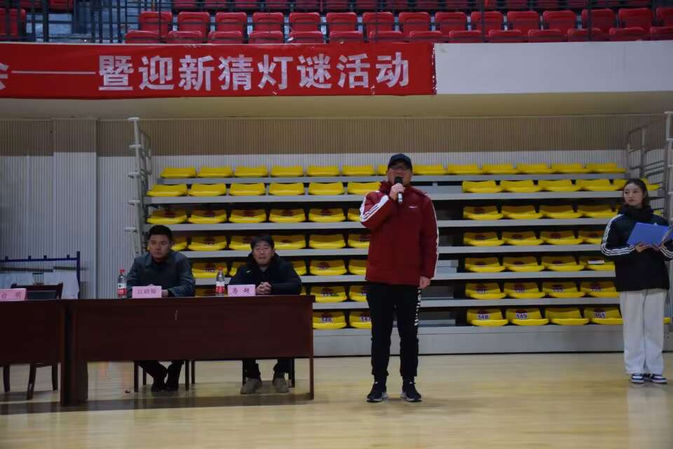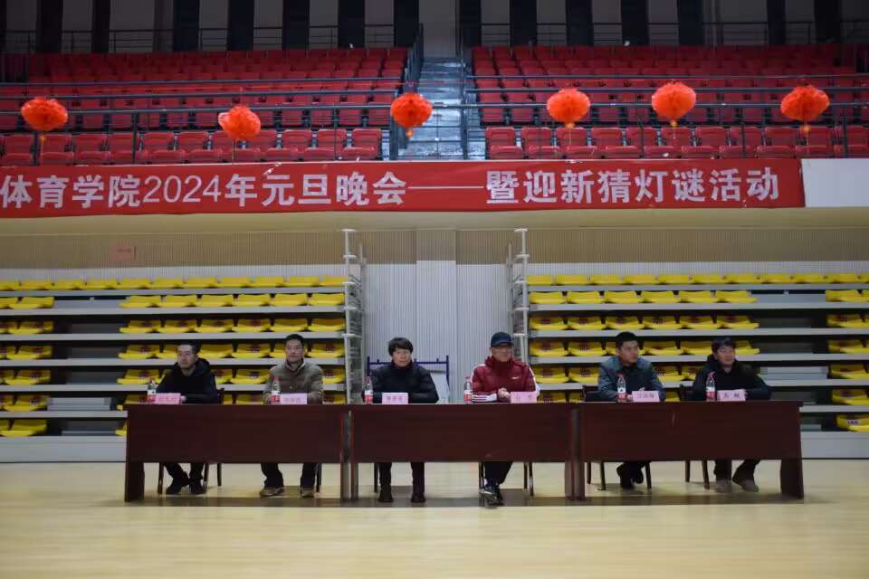 为了给体院师生提供一个欢乐,喜庆的跨年氛围,迎接新一年的到来,体育学院于2023年12月26日19点在篮球馆举办了“年年景不改,岁月人常在”的2024年元旦晚会暨猜灯谜活动。参加此次活动的有体育学院院长白明、副院长陈芳芳,党政办公室主任宋荣凯、学生事务科科长江晓翔、组织科科长刘天行、团委副书记马超以及体育学院各班级代表。