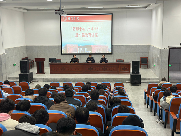 为进一步提高学生防范电信网络诈骗意识,预防和减少学生网络诈骗案件发生, 3月6日,体育学院举办 “防诈于心,反诈于行”反诈骗主题讲座。讲座邀请宿州市公安局反诈中心民警王者、卢珂担任主讲。体育学院2021、2022、2023级学生参加讲座及互动活动。讲座由体育学院副院长陈芳芳主持。
