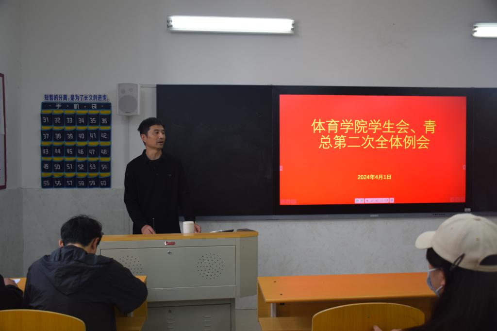 为了提升学生会成员服务意识和组织能力,体育学院于2024年4月1日中午12:20在体育学院新馆A109举行体育学院学生会、青年志愿服务总队第二次全体会议。参加此次会议的有体育学院团委书记胡杰、学生会以及青年志愿服务总队的全体成员。