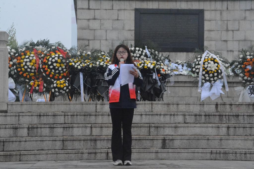 第二项,向革命烈士敬献花圈,由两位同学代表向纪念碑敬献了花圈,代表着新一代青年大学生对烈士们的崇敬与尊重。