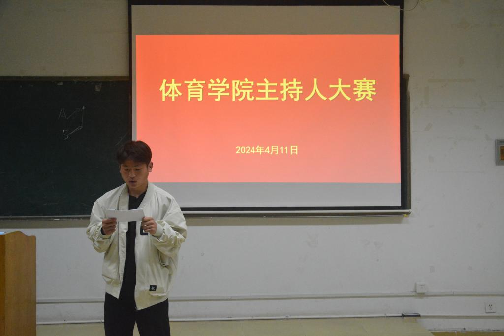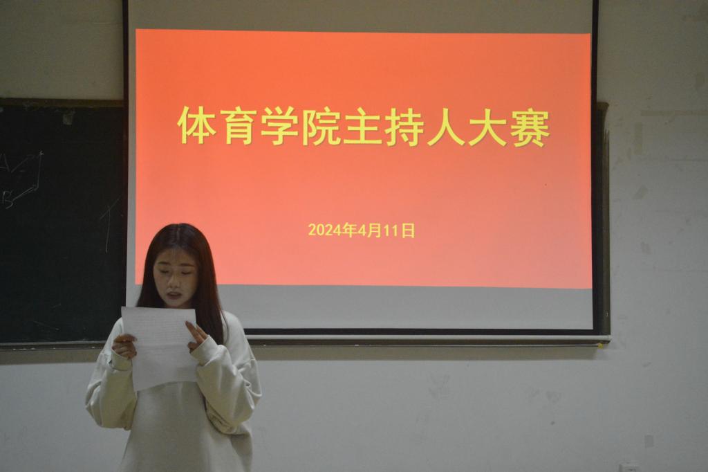 为了拓展我院学生的综合素质能力,丰富其课余生活,锻炼交际反应能力,以锻炼同学们的上台胆量以及口才能力为主要目的,把快乐健言贯彻到同学们的生活之中,体育学院于2024年4月11日晚19:00在体育楼114举行以“奋斗有我、新声绽放”为主题的首届主持人大赛。本次大赛由体育学院学生会主席丁晓宇、胡亚军,学生会学术科创中心部长王胜,青总服务部部长吴泽四位同学担任评委。
