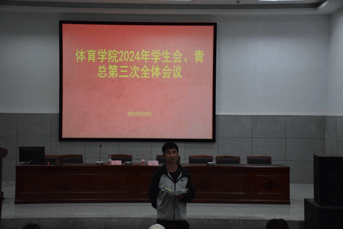 为了提升学生会成员的服务意识和积极主动性,体育学院于2024年5月9日中午12:20准时在体育学院报告厅召开体育学院2024年学生会、青总第三次全体会议。参加此次会议的有体育学院团委书记胡杰、学生会以及青年志愿服务总队的全体成员。