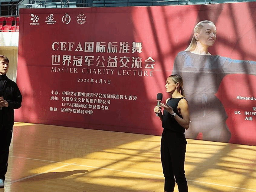 2024年4月5日-6日,俄罗斯籍体育舞蹈世锦赛等多项赛事世界冠军Alexandra Averkieva来我校进行交流。为提高社团成员体育舞蹈技能,激发社团成员学习与练习热情,丰富校园体育文化生活,健身操舞社团组织开展了本次体育舞蹈交流会。本次体育舞蹈交流会中由英国伯明翰大学硕士吴宇哲担任翻译。