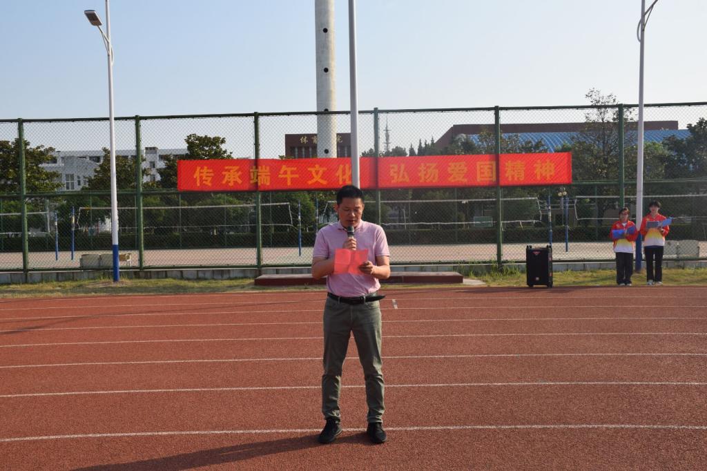 接着进行第三项内容:由体育学院党委书记李高发表讲话,他首先介绍了端午节在中华文化中有着重要意义,随后他表示希望同学们要更多了解并传承和弘扬中华民族优秀传统文化,激发同学们爱国热情及民族自豪感,其次应牢记习近平总书记关于传承中华优秀传统文化的重要讲话,为中华民族伟大复兴奉献我们青年一代文化智慧。最后由主持人宣布升旗仪式结束,同学们陆续退场。