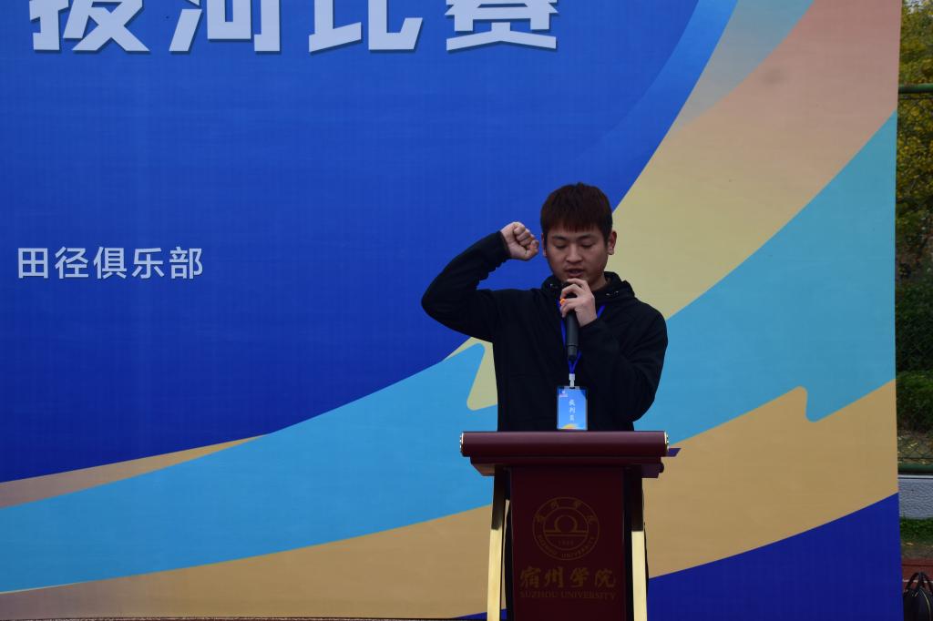 本次开幕式共有四项议程,首先第一项是由高歌致开幕词,她希望每一位参赛同学都能全力以赴,在比赛过程中体会集体力量的强大,并预祝参赛队员取得优异成绩。随后由运动员代表严家辉进行宣誓。之后由裁判员代表汝城瑞宣誓,保证本次比赛结果的可靠性,公正性与公平性。最后由李高宣布宿州学院第一届“学海杯”拔河联赛正式开始。