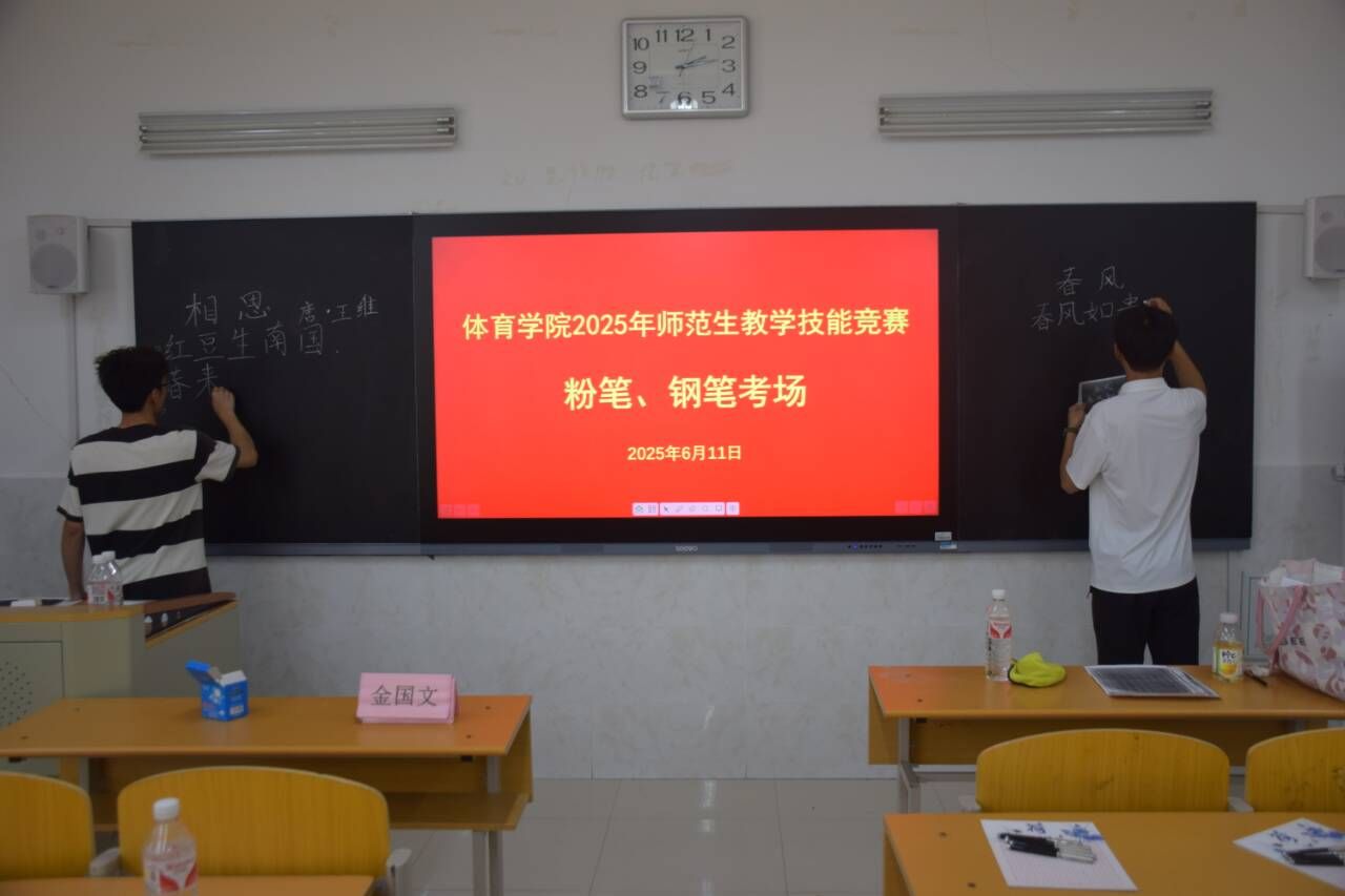 为进一步推动师范教育内涵式发展,提升体育学院师范生汉字书写和普通话水平,夯实教学技能基本功,体育学院于2025年6月11日在新体育馆A119、A120成功举办了“三字一话”大赛。本次大赛由各个年级体育教育班推荐,最终20余人报名,评审严格按照学校《关于举办宿州学院2025年师范生“三字一话”大赛的通知》文件精神与要求开展。