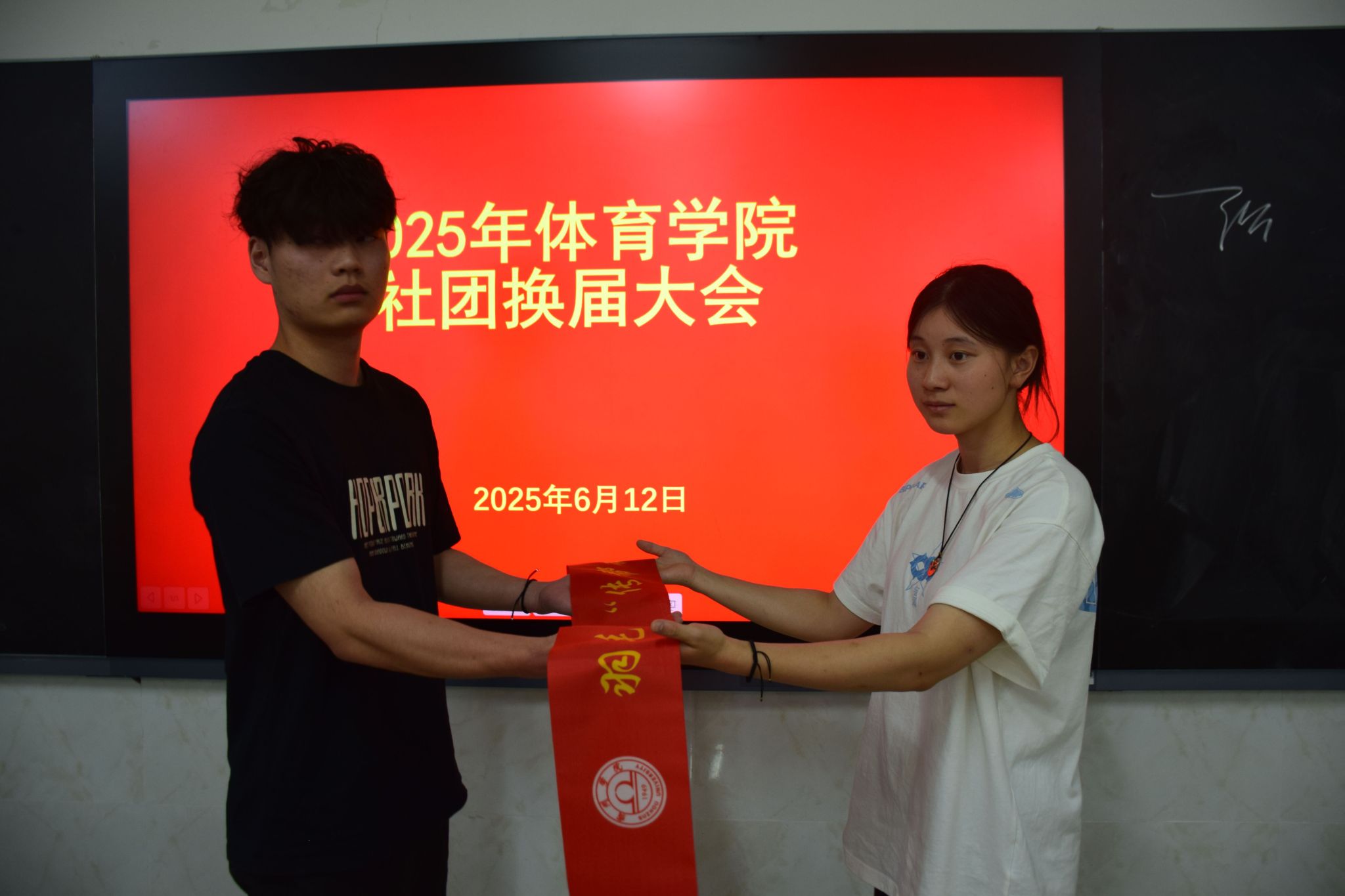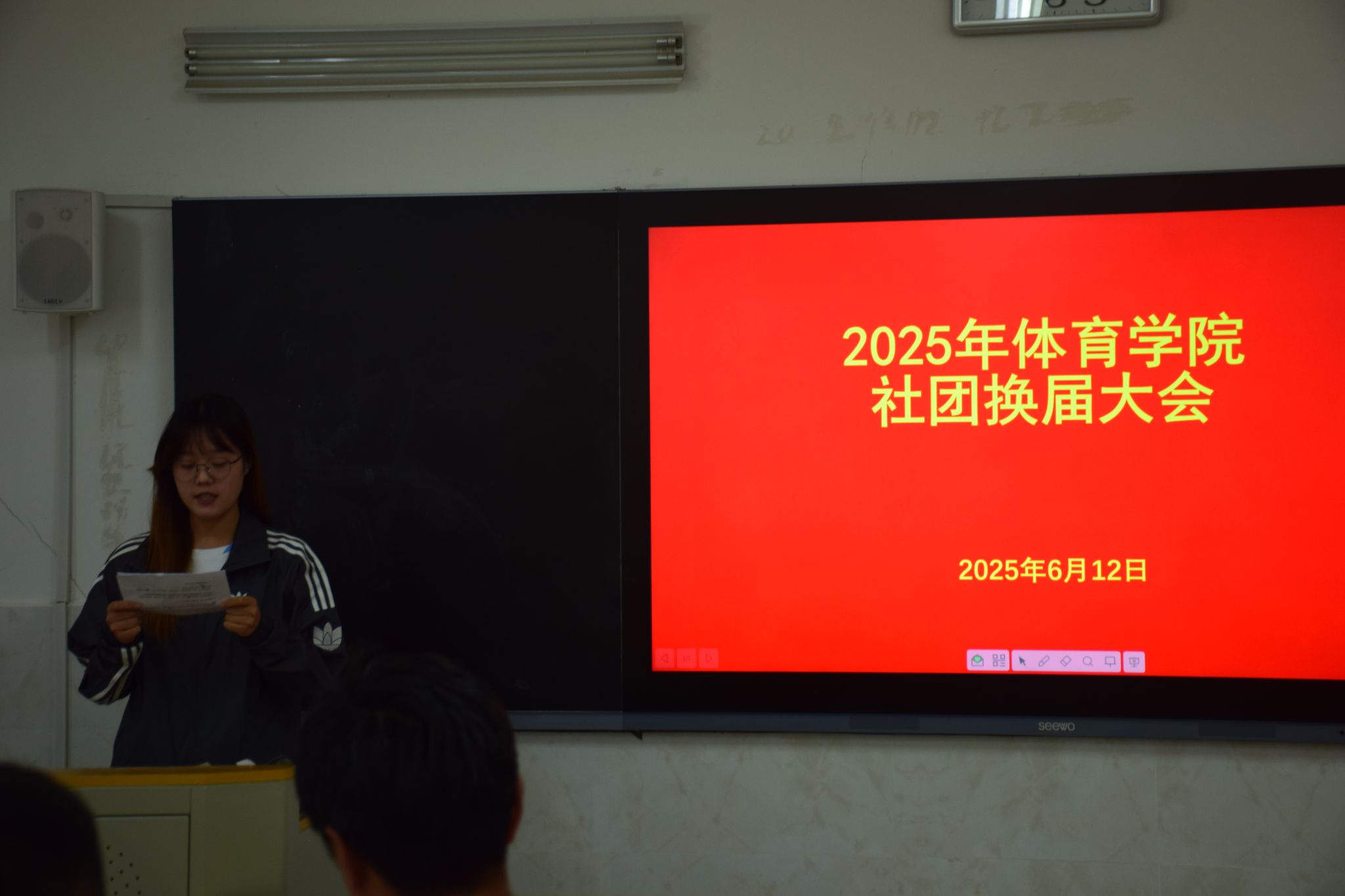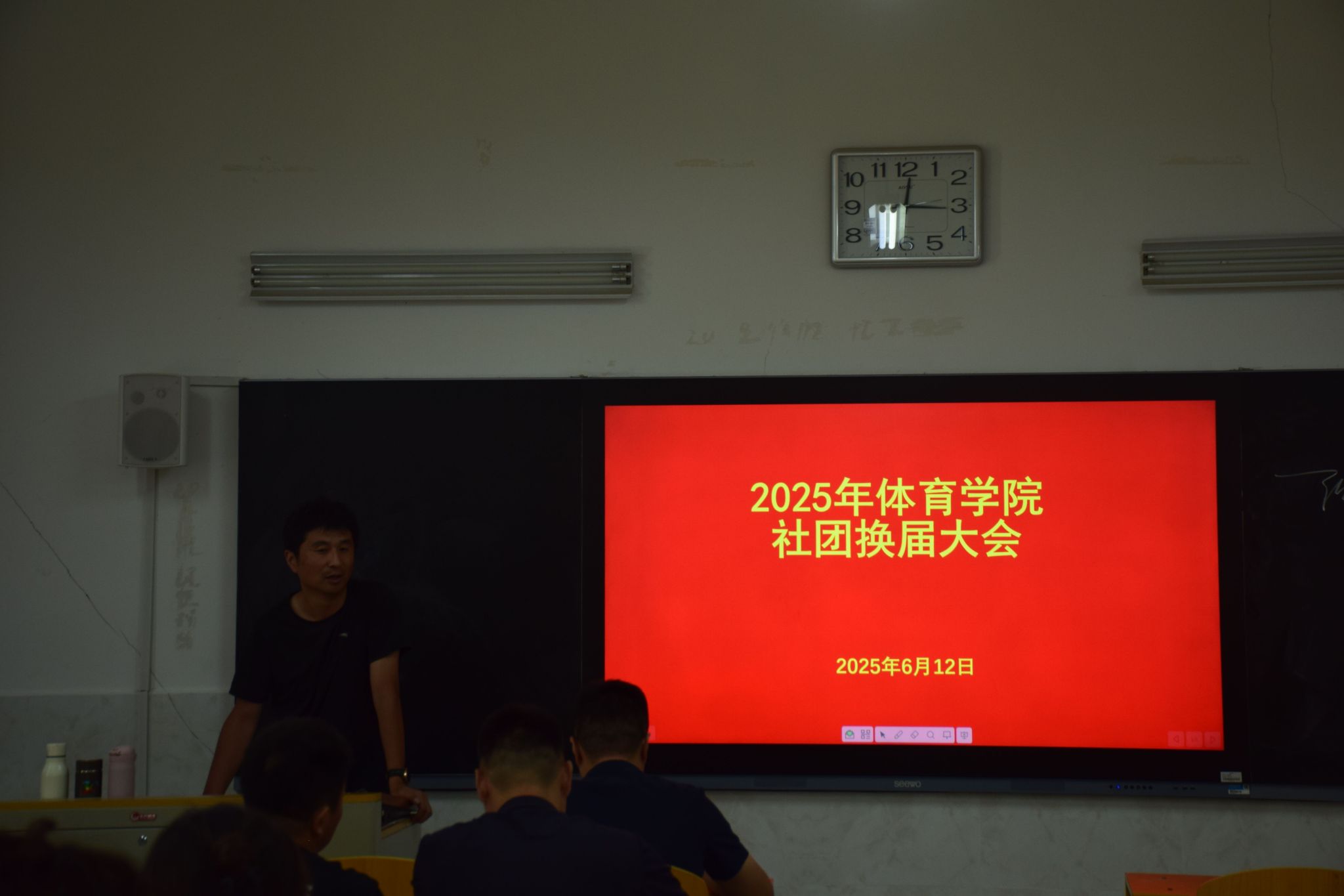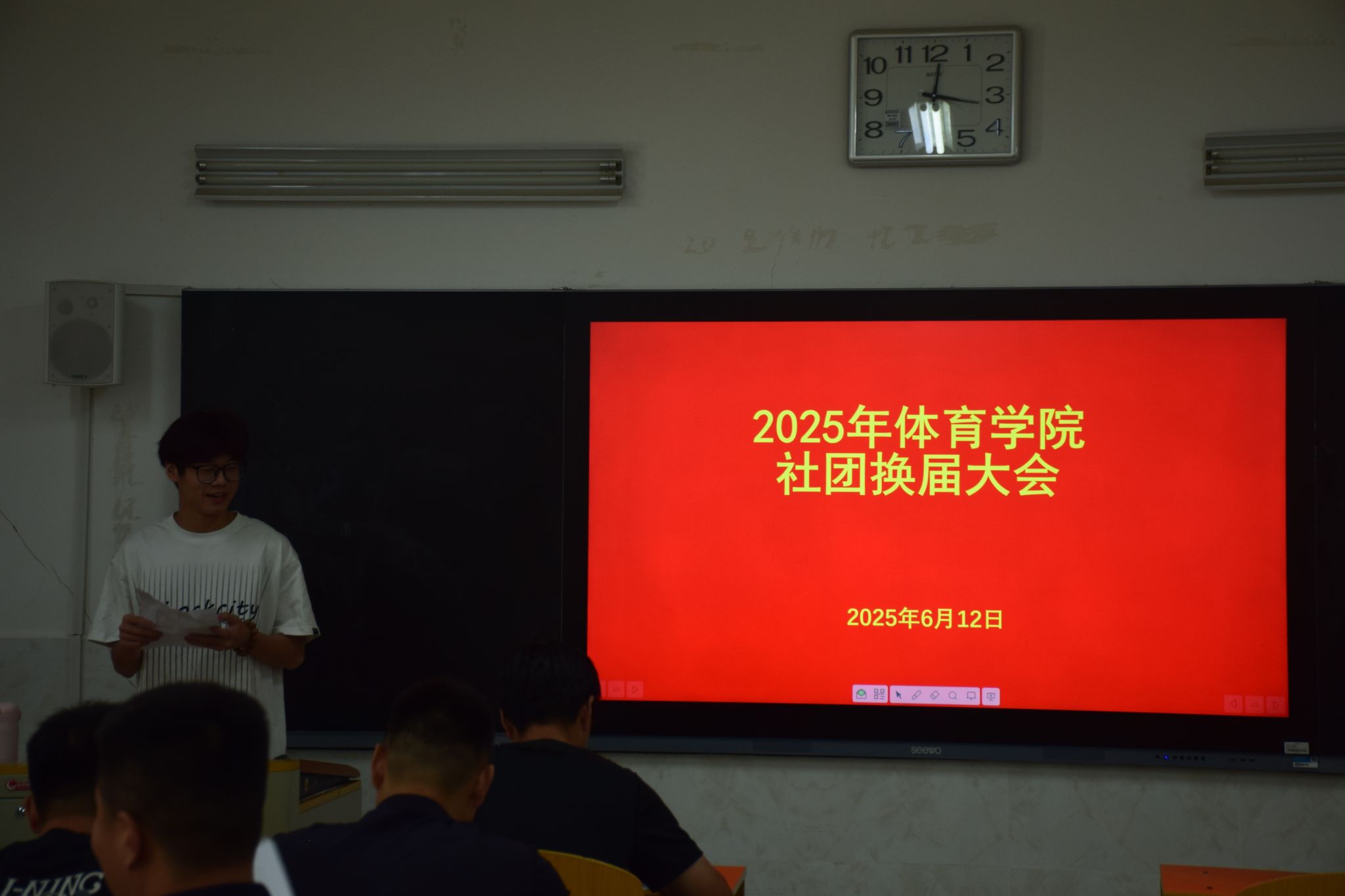 为保障社团工作实施的延续性,进一步激发团队活力,体育学院于2025年6月12日中午12:30在体育馆A120举行了社团换届大会,本次活动由体育学院分团委书记胡杰主持,各社团指导老师、上一届社长及社团候选人均准时到场,大家共同见证新一届社团管理团队的诞生。