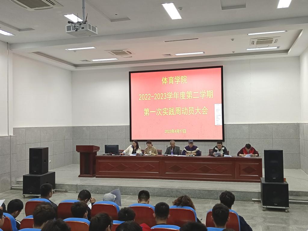 为进一步做好实践工作,提高学生实践能力,扎实推进我院实践工作的顺利开展,体育学院于4月17日下午,在体育馆多功能报告厅召开“体育学院2022-2023学年度第二学期第一次实践周动员大会”。体育学院党委副书记、院长白明,舞蹈表演专业负责人刘卫东、体育教育教研室主任徐光辉、休闲体育教研室主任刘明龙、实习实训中心主任张丽萍、见习指导教师,以及2020级和2022级见习生们参加了本次动员大会。会议由实习实训中心曹永珍主持。