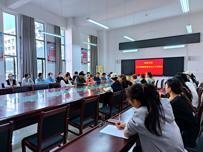 为进一步做好学生实践教学工作,引导学生做好见习前的各项准备工作,推进本学期学生实践教学工作的顺利开展。体育学院于11月3日上午,在体育馆A104会议室召开了2022级舞蹈表演专业见习动员会。体育学院党委副书记、院长白明,休闲体育教研室副主任张开媛、实习实训中心主任张丽萍、见习指导教师王明和刘天行,以及2022级舞蹈表演专业全体学生参加了本次会议,会议由实习实训中心教师曹永珍主持。