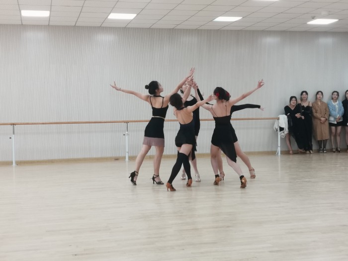 精彩的背后,是我们看不见的汗水和付出,以及指导教师的悉心教导。每一个动作,每一个节拍,每一次配合,也都经历了千百次的锤炼。此时,地板上的哒哒声,仿佛诉说着2021级舞蹈表演学子对舞蹈的热爱与坚持。