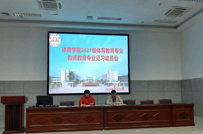 为进一步做好专业教学实践工作,推进我院见习工作的顺利开展,体育学院于10月28日下午,在体育馆B112多功能报告厅召开2021级教师教育专业见习动员大会。体育学院党委副书记、院长白明,副院长陈芳芳、见习指导教师和见习生参加了本次动员大会。会议由实习实训中心曹永珍主持。