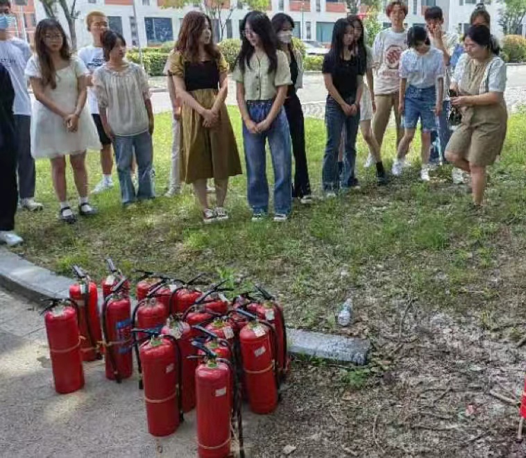 在消防灭火演练环节,蔡春早详细讲解了消防灭火器材的正确使用方法、操作程序和注意事项。随后,教师和学生现场操作演练,蔡春早对实操过程中出现的问题及时予以纠正和指导。