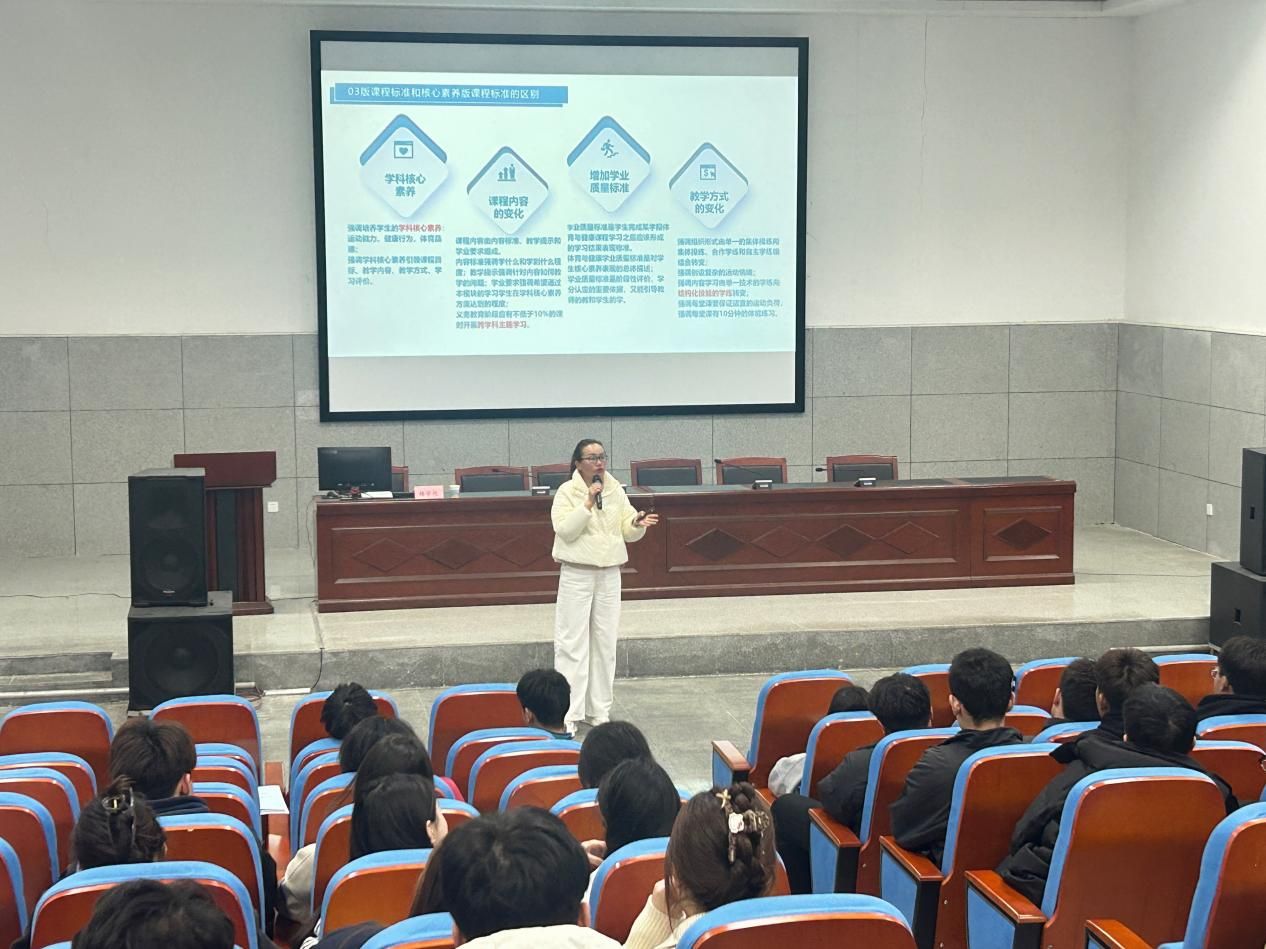 根据国家体育总局、安徽省体育局、安徽省教育厅相关文件精神,为深化体教融合实践,探索体育支教与基层教学创新路径,体育学院于3月19日下午在体育馆报告厅举办题为“体育支教志愿者教学与训练”专题讲座,特邀宿州市第二中学高级教师、宿州市学科带头人梅学艳老师担任主讲人。体育学院领导班子、指导教师及200余名学生代表参与活动。活动由体育学院院长白明主持。