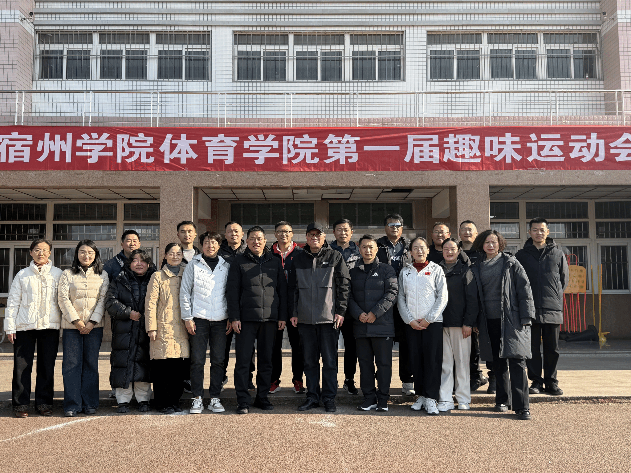 2025年12月3日中午12:30,体育学院首届趣味运动会在宿州学院教育园区田径场顺利举行,体育学院党委书记李高,党委副书记、院长白明,副院长陈芳芳,休闲体育教研室主任刘明龙,休闲体育专业负责人张开媛,各班级辅导员以及休闲体育教研室全体教师出席了本次活动。