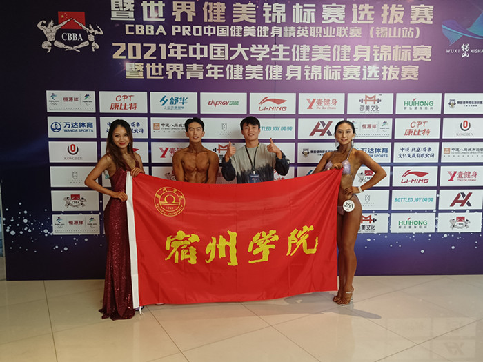 在学校领导关心和体育学院领导班子大力支持下,由体育学院院长白明领队,宋荣凯、李贺两位教练员和胡天臣等4位学生组成宿州学院代表队,利用课余时间努力训练,参加了男子古典健美、男子健身模特、女子健身和女子健身模特4个项目的比赛。