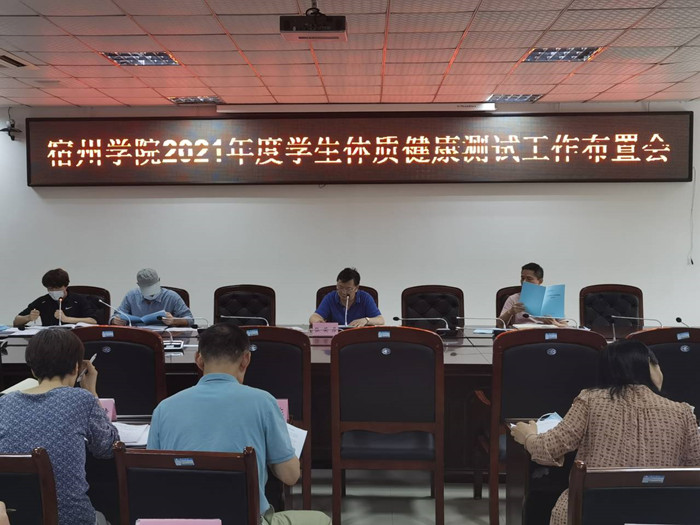 2021年9月7日,学校在逸夫楼第一会议室召开2021年度学生体质健康测试工作布置会。教务处、后勤与基建管理处主要负责同志、各二级学院党政负责人以及学校体育运动委员会办公室相关工作人员参会。会议由副校长、体育运动委员会主任张英彦主持。
