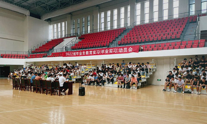 为进一步提升体育学院人才培养水平和就业质量,帮助毕业生提前掌握就业形势,提升毕业生实习就业水平,体育学院于8月30日在体育馆篮球馆举行2022届体育教育和休闲体育毕业生实习动员大会。体育学院党委书记李高、院长白明、实习实训中心主任张荣华、教学秘书刘海龙、实习指导教师及2018级全体学生参加会议,毕业实习动员大会由院长白明主持。