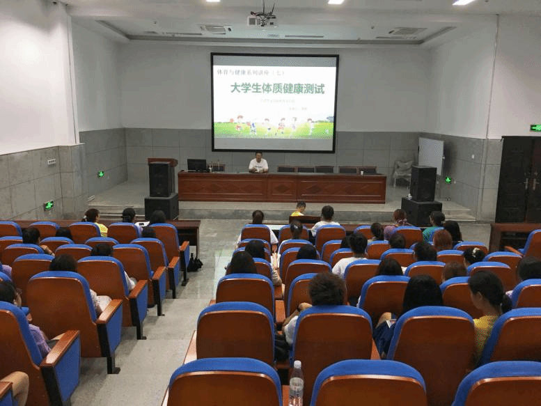为了进一步落实校体育运动委员会联合体育学院举办的体育与健康系列讲座活动,提高我校学生对大学生体质将测试方法及锻炼方法的全面认知,2021年6月9日,体育学院李贺老师在体育学院报告厅作了题为 “大学生体质健康测试——测试方法与锻炼方法”的专题讲座,此次讲座吸引了学校2020级公共体育100多位学生现场聆听。