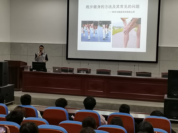 之后进一步讲解了如何开始跑步,如何进行强度控制,重点讲解了跑步的力量训练,以及跑步之后如何放松等,并在现场带领同学们进行了跑后拉伸的动作练习,同学们听了之后,感觉受益多多,解决了很多跑步的疑惑。讲座的最后,还进行提问互动环节,温老师就同学关心的问题进行了耐心、专业的解答。