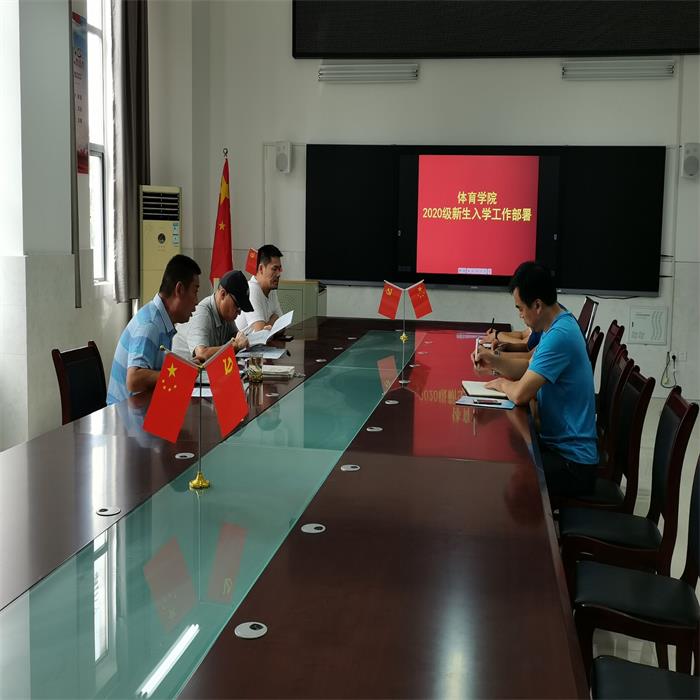 流光溢彩迎新生,心心连新齐飞扬。为迎接2020级新生的到来,给新生营造一个和谐、舒适、温馨的校园氛围;体育学院于2020年9月9日在体育学院会议室召开迎新布置会,会议由宋红军书记主持,白明副院长、团总支书记胡杰及部分辅导员参加了会议。
