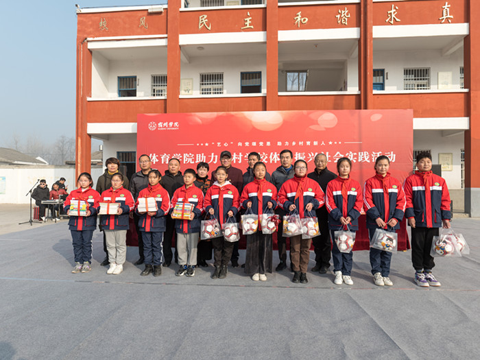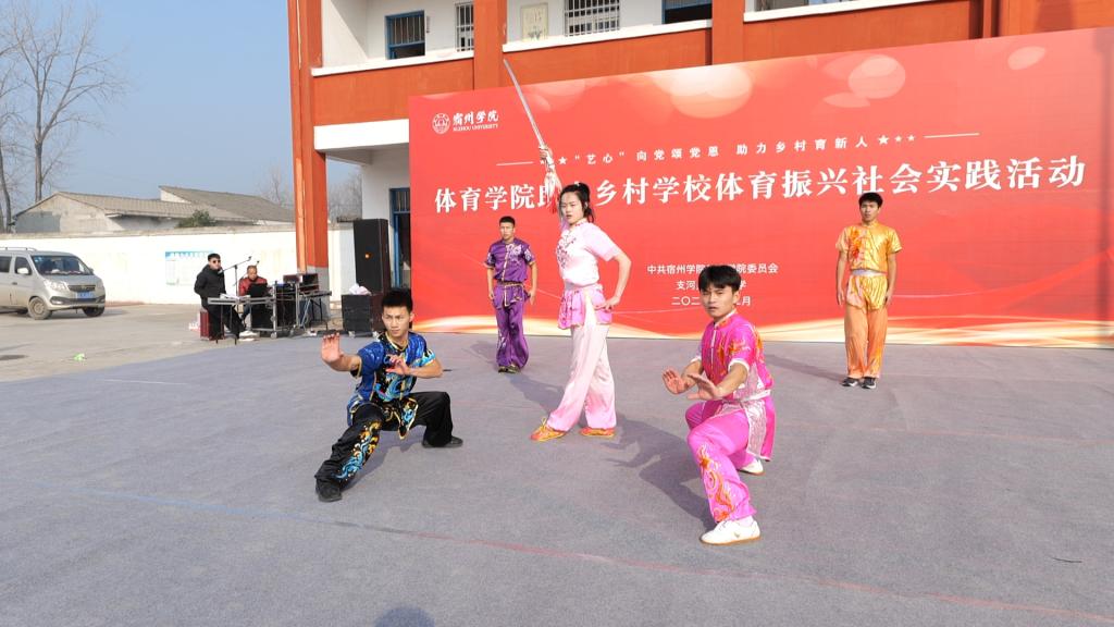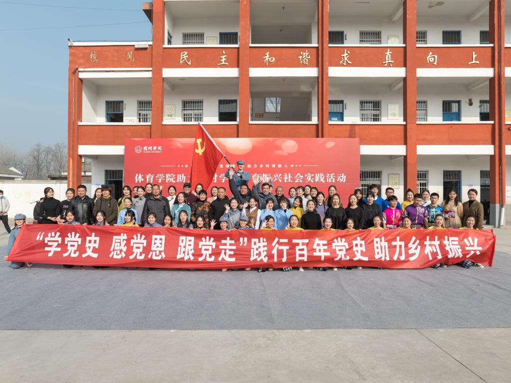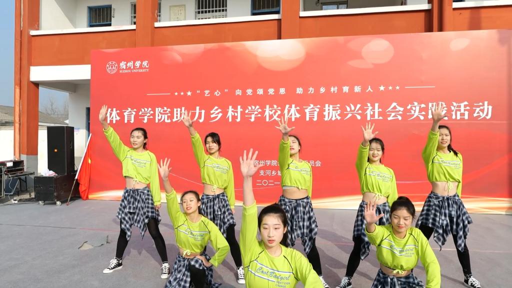 为深入学习宣传贯彻习近平新时代中国特色社会主义思想,引导和帮助学生在课堂中受教育、长才干、作贡献,在观察实践中学党史、强信念、跟党走。2021年12月10日,体育学院结合本学期专业实践课程,组织19级健美操方向、19级武术方向、20级舞蹈表演和21级舞蹈表演等四个专业师生服务队以“‘艺’心向党颂党恩 助力乡村育新人”为主题,赴支河乡城孜小学助力乡村学校体育振兴社会实践,与宿州市埇桥区支河乡城孜小学党支部结对共建活动,扎实推进党史学习教育。实践队由学院党委书记李高,党委副书记、院长白明,党委副书记王德玉,副院长陈芳芳带队,6名老师和50余名学生共同参与。