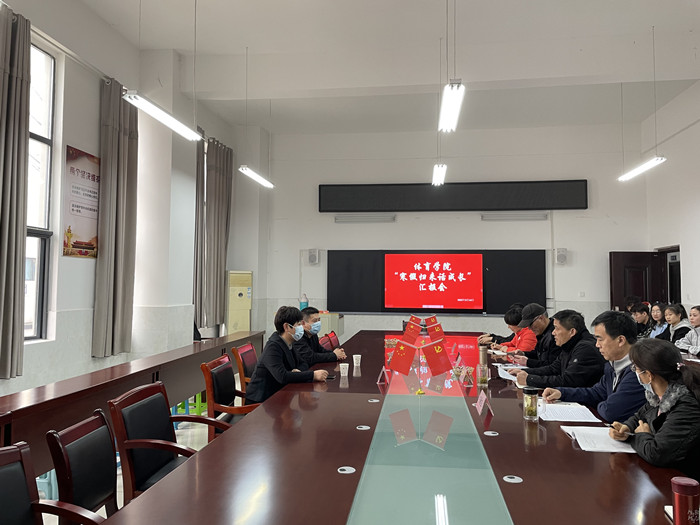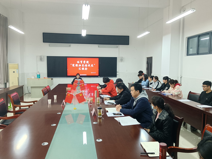 为进一步全面落实立德树人根本任务,加强大学生思想政治教育,让大学生深刻体会“服务社会,贡献社会”的真正含义,根据校学工部统一部署,体育学院于3月14日在体育馆A104会议室,集中开展了“寒假归来话成长”汇报活动,13位同学依次登台,通过演讲和PPT,分享了他们丰富多彩、收获满满的寒假生活和感受。此次汇报会由体育院党委书记李高主持,校党委宣传部长李真、党委学工部副部长贾学彬与会指导,白明、王德玉、陈芳芳等学院班子成员、学生管理科、分团委负责人及全体辅导员、学生代表等参加了本次活动。