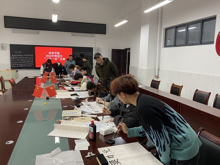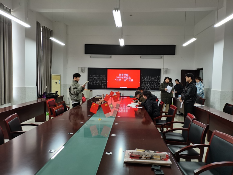 本次比赛各单项赛事在体育学院教务办公室的协调下有条不紊的举行,普通话在104会议室举办,“三字”比赛先后在104会议室、109教室和113教室举办。评委本着公平公正的原则进行评分,赛后的各评委的分数交到到教务办公室进行汇总。