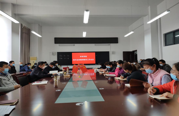 4月1日中午,体育学院在A104会议室召开4月份全体教师教学工会议,党委书记李高、党委副书记、院长白明、党委副书记王德玉、教学副院陈芳芳及全体教职工参加,会议由陈芳芳主持。