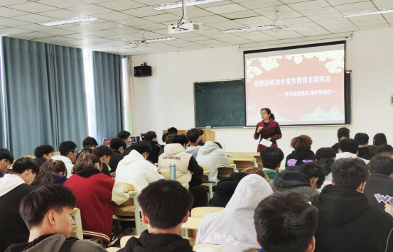 2022年4月1日,2021级召开民族团结进步宣传教育主题班会——坚持民族团结 维护祖国统一,班会由2021级辅导员田慧丽主持。