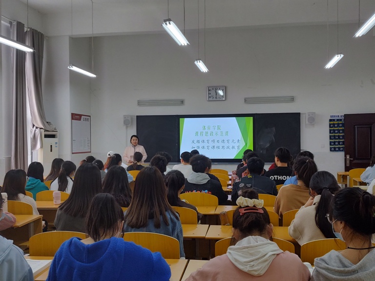 为加强学生思想政治培养,体育学院于2021年4月15日上午在体育学院A109教师举办课程思政示范课活动。副院长陈芳芳,各教研主任、教师代表、学生代表观摩本次活动。活动由副院长陈芳芳主持。