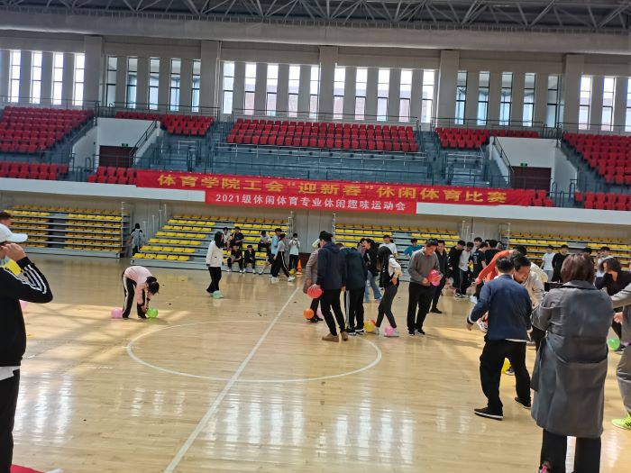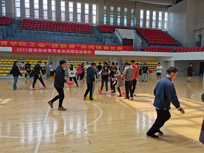 为促进体育学院师生体育活动,2021级休闲体育专业利用专业认知实习的机会,于2022年4月14日在篮球馆举办休闲趣味运动会。