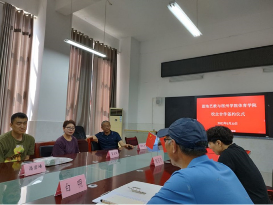 为深入贯彻落实党中央、国务院关于稳就业保就业的决策部署,进一步深化校企合作,强化产学研融合,有效推动协同育人。6月20日下午,宿州市蓝池艺术教育培训中心有限公司到体育学院就学生实习、就业等事宜进行深入交流和讨论,公司负责人潘君峰与体育学院院长白明、副院长陈芳芳、舞蹈表演专业负责人刘卫东及实习实训中心等进行了座谈。