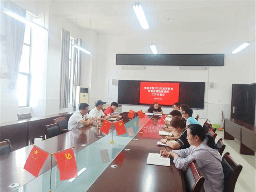 2022年9月19日中午,体育学院在104会议室召开了2022年高等教育质量监测数据填报工作部署会。会议由党委副书记、院长白明主持,党委书记李高、副院长陈芳芳及科研秘书张荣华、教研秘书刘海龙、教务员王彦银、实习实训副主任张丽萍、党政办公室主任宋荣凯、各教研室主任等相关职能部门的负责人参加会议。