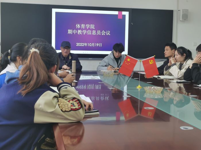为进一步强化教学管理,提高课堂教学质量,充分发挥学生在教学管理活动中的积极作用,体育学院于2022年10月19日12:30,在体育学院会议室召开了学生教学信息员会议。会议由王彦银主持,出席会议的有体育学院院长白明、主管教学副院长陈芳芳、体育学院各班教学信息员。