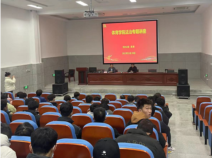 为学习宣传贯彻党的二十大精神,加强校园法治教育,增强学生法律意识,弘扬和宣传法治精神,维护校园安全稳定,11月30日,体育学院邀请校办公室法治科科长聂鹏在体育馆报告厅为2022级新生及各班法治联络员开展法治专题讲座。体育学院党委书记李高主持。