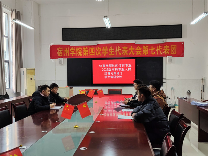 为进一步提高学生培养质量,体育学院休闲体育专业于2022年12月7日,通过线上腾讯会议和线下会议的形式开展2023版人才培养方案修订学生调研会。休闲体育专业2019级、2020级、2021级,三个年级共10位学生参与本次会议,休闲体育教研室主任张炳祥、副主任刘明龙参与交流。