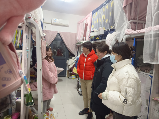 在走访中,学院领导班子成员不断提醒学生,春季为传染病高发季节,需要时刻保持宿舍卫生并经常对宿舍进行通风;要注意安全用电、用火,不要违规使用大功率电器,保障自身安全;要注意保证休息与睡眠,不要熬夜;注意实践课课上及课后练习强度,不要勉强进行高强度练习;积极备考、认真复习,提高自己的自律性,形成良好的学习习惯,力争在即将到来的考试中取得优异的成绩。