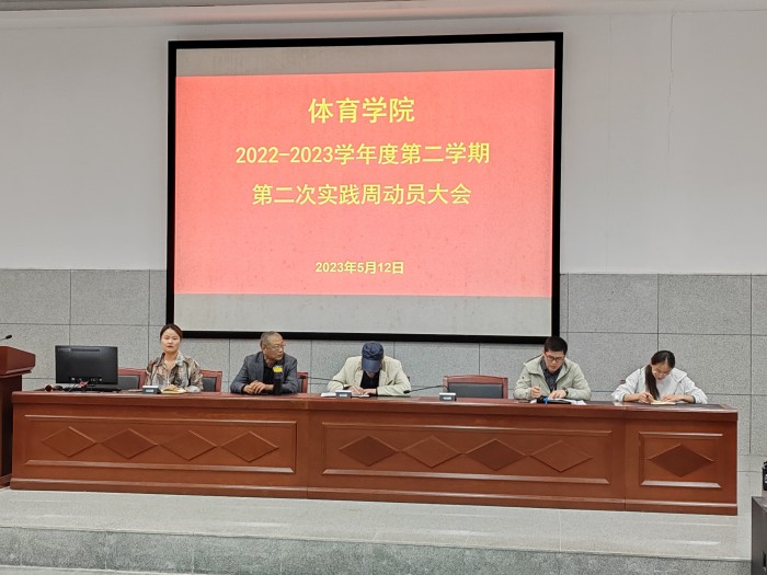 为进一步做好实践工作,提高学生实践能力,扎实推进我院实践工作的顺利开展,体育学院于5月12日中午,在体育馆B116多功能报告厅召开了“体育学院2022-2023学年度第二学期第二次实践周动员大会”。体育学院党委副书记、院长白明,舞蹈表演专业负责人刘卫东、体育教育教研室主任徐光辉、休闲体育教研室副主任张开媛、实习实训中心主任张丽萍、见习指导教师,以及2021级各专业和2022级舞蹈表演专业(体育舞蹈和健美操方向)见习生们参加了本次动员大会。