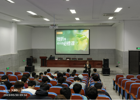 2023年5月体育学院大一、大二各班召开大学生挫折教育主题班会,体育学院心理辅导员田老师主讲。