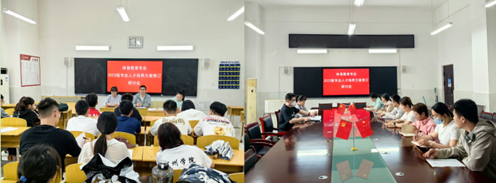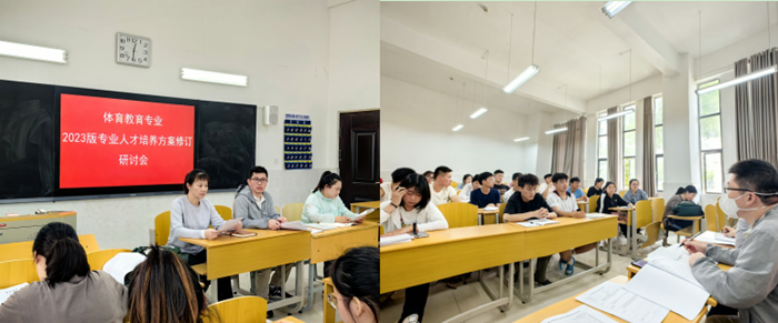 为扎实推进人才培养方案修订工作,总结前期阶段性工作成果,进一步明确下一阶段工作目标,科学合理的制定人才培养方案,推动体育专业建设和人才培养质量再上新台阶,按照学院部署,5月24日中午体育教育教研室召开2023版专业人才培养方案的修订研讨会,在前期调研的基础上继续对2023版培养方案进行修订研讨。出席本次会议的有院教学督导组代表李茹、教研室主任徐光辉、教研室副主任宋梅、课程负责人以及体育教育专业2019级-2022级各班级班长、学习委员、学生代表(4人)参加会议。