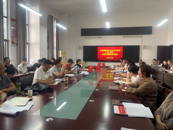 为确保新学期各项工作有序开展,8月31日上午9:30,体育学院在体育馆A104会议室召开新学期教学工作会议。体育学院党委书记李高,党委副书记、院长白明,党委副书记王德玉,教学副院长陈芳芳,全体教职工参加会议。会议由体育学院党委书记李高主持。
