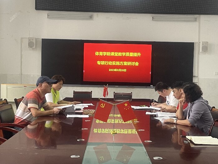 2023年9月20日,在体育学院104会议室召开教学质量提升专项行动实施方案研讨会。党委副书记、院长白明,教学副院长陈芳芳,体育学院各教研室主任参加了会议,会议由体育学院院长白明主持。
