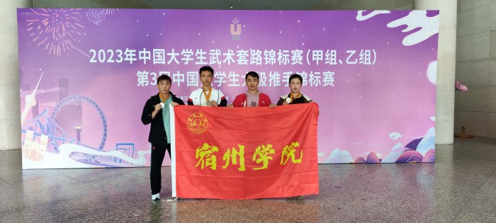 2023年10月5日至11日,中国大学生武术套路锦标赛在天津市武清区奥蓝际德环球演绎中心举行。本次比赛由中国大学生体育协会主办,是全国高校武术比赛中级别最高、规模最大、影响力最广的赛事,吸引了来自全国229所高校的1500余名运动员展演武术技艺,共享武术文化魅力。宿州学院武术代表队在刘明龙、付荣、陈芳芳老师的指导下,带领3名运动员参加了此次锦标赛。