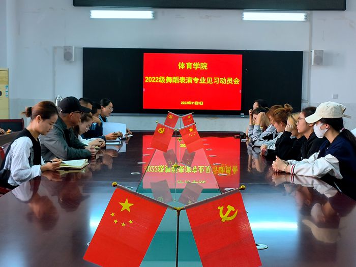 为进一步做好学生实践教学工作,引导学生做好见习前的各项准备工作,推进本学期学生实践教学工作的顺利开展。体育学院于11月3日上午,在体育馆A104会议室召开了2022级舞蹈表演专业见习动员会。体育学院党委副书记、院长白明,休闲体育教研室副主任张开媛、实习实训中心主任张丽萍、见习指导教师王明和刘天行,以及2022级舞蹈表演专业全体学生参加了本次会议,会议由实习实训中心教师曹永珍主持。