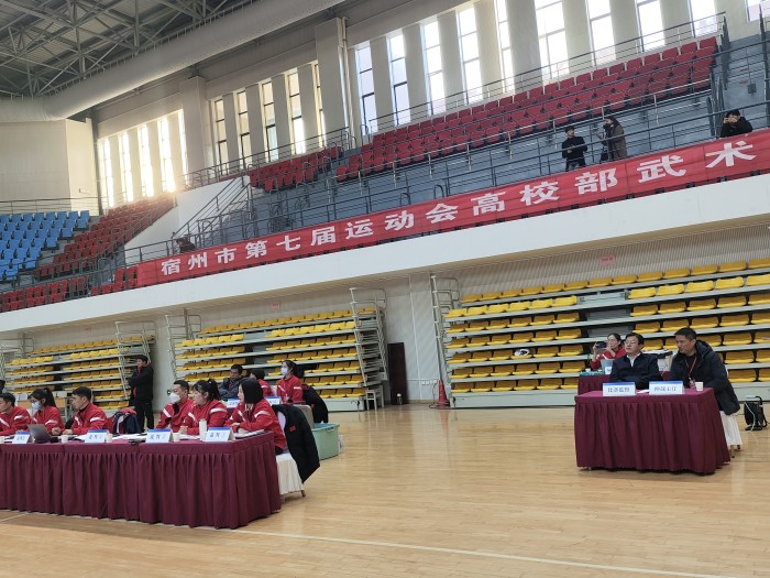 12月1日,由宿州市人民政府主办,宿州市教育体育局、宿州学院承办的宿州市第七届运动会高校部武术竞赛在宿州学院成功举办,来自宿州市四所高校共48名运动员参加了比赛。