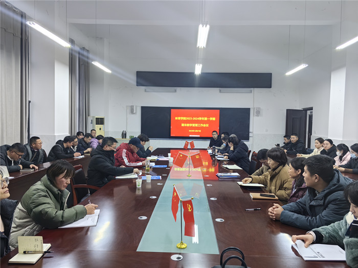 为进一步做好学期末教学管理工作,落实学院高质量、高标准的教学精神,确保期末教学工作的有序进行,2023年12月27日下午,体育学院在A104会议室召开2023-2024学年第一学期期末教学管理工作会议。体育学院党委书记李高,党委副书记、院长白明,教学副院长陈芳芳及全体教职工参加会议。会议由院长白明主持。