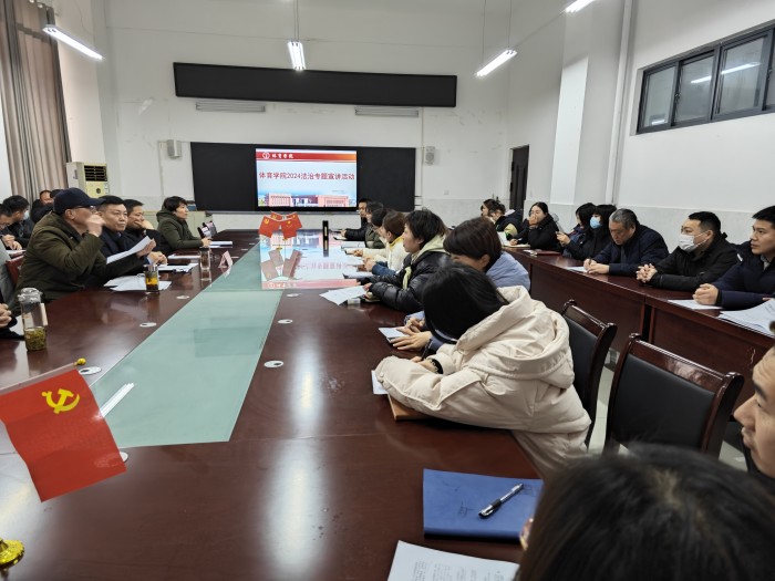 为深入学习贯彻习近平法治思想,全面提升全体教师法治意识,推进依法治校不断深入,构建和谐法治校园,1月15日,体育学院邀请学校办公室法治科科长聂鹏来我院开展法治宣传专题讲座。